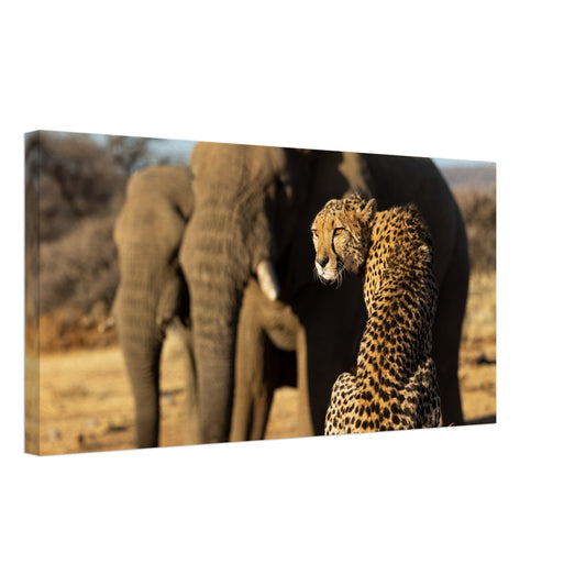 Cheetah with Elephants - by Carel Steenkamp - Canvas